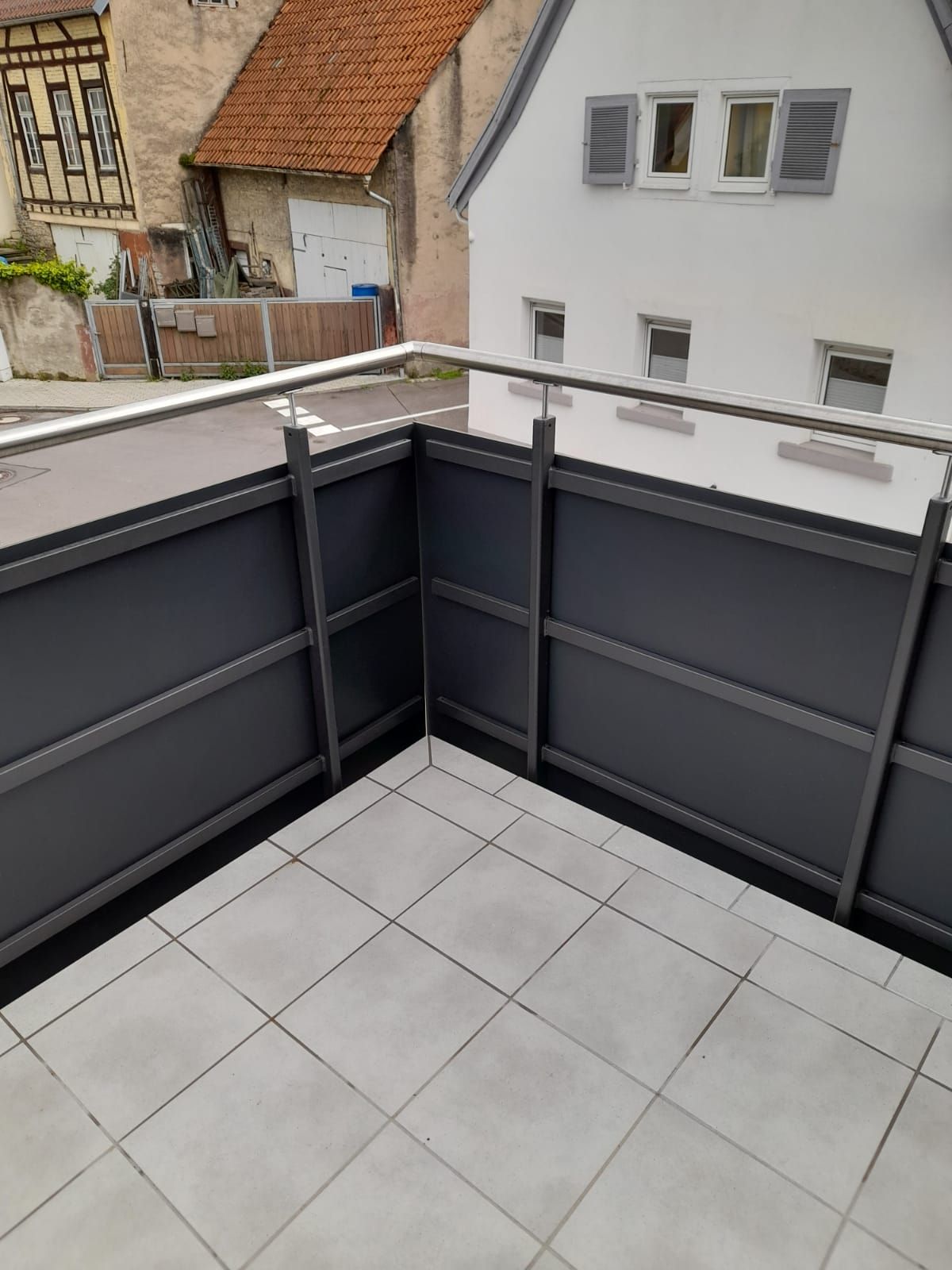 Zu jedem Balkon gehört auch ein Balkongeländer. Das Balkongeländer hat die Hauptfunktion, Personen gegen Absturz zu sichern. Bei Wohngebäuden muss bis zu einer Absturzhöhe von 12 m die Geländerhöhe 0,9 m betragen (Empfehlung = 1,00 m). Über 12 m Absturzhöhe gilt eine Mindesthöhe von 1,10 m. Öffnungen im Geländer dürfen nicht breiter als 12 cm sein. Geländer sind so auszubilden, dass Kindern das Überklettern nicht erleichtert wird. Also bevorzugt senkrechte statt waagerechte Füllstäbe, da diese nicht zum Besteigen animieren.